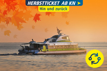 Herbst-Ticket Hin- u. Rückfahrt ab Konstanz 04.10. - 29.11.2023 0,00 € Konstanz Details Herbst-Ticket Hin- u. Rückfahrt ab Friedrichshafen 04.10. - 29.11.2023 0,00 € Friedrichshafen Details Early Bird-Ticket, Hin- u. Rückfahrt ab Friedrichshafen, 04.10.2023 - 30.04.2025 0,00 € Friedrichshafen Details Early Bird-Ticket, Hin- u. Rückfahrt ab Konstanz, 04.10.2023 - 30.04.2024 0,00 € Konstanz Details Nach oben
